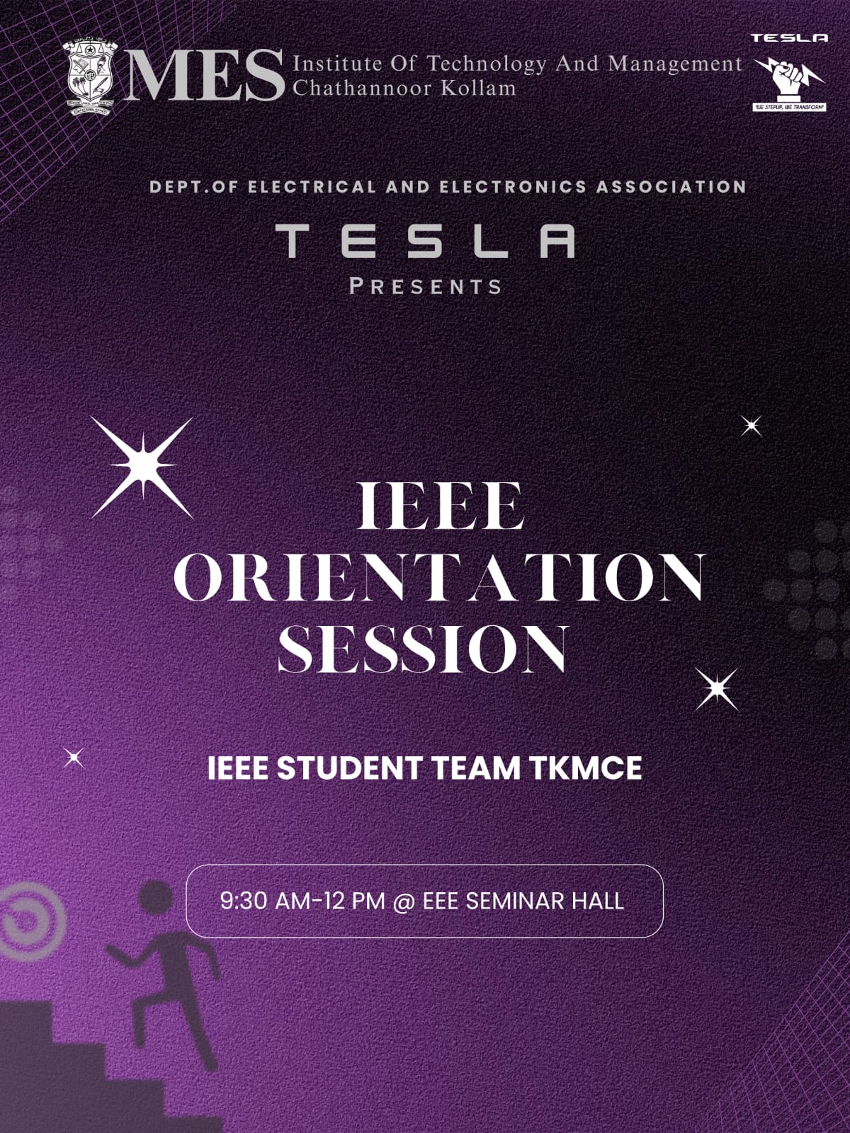 The TESLA - Department of Electrical and Electronics Association proudly presents the IEEE Orientation Session in collaboration with IEEE Student Team TKMCE.